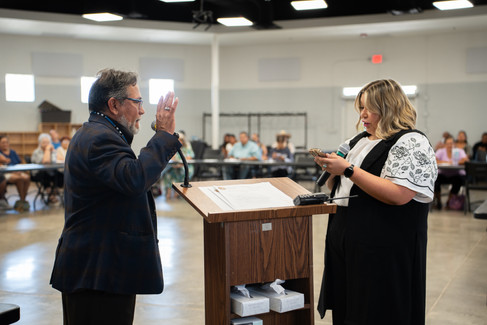 The meeting culminated with the historic swearing-in of respected community leaders: Bobby Gonzalez continuing his role as the Caddo Nation Chairman, Verna Castillo as Treasurer, Brittany Habbart as the newest council member and OKC representative, and Anita Pewerdy as a new hearing board member.